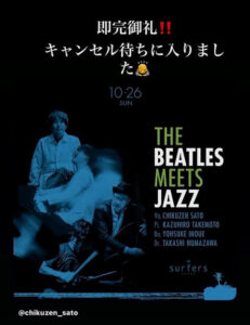 ・10/26(sun) THE BEATLES MEETS JAZZ 開催についてのお知らせです。