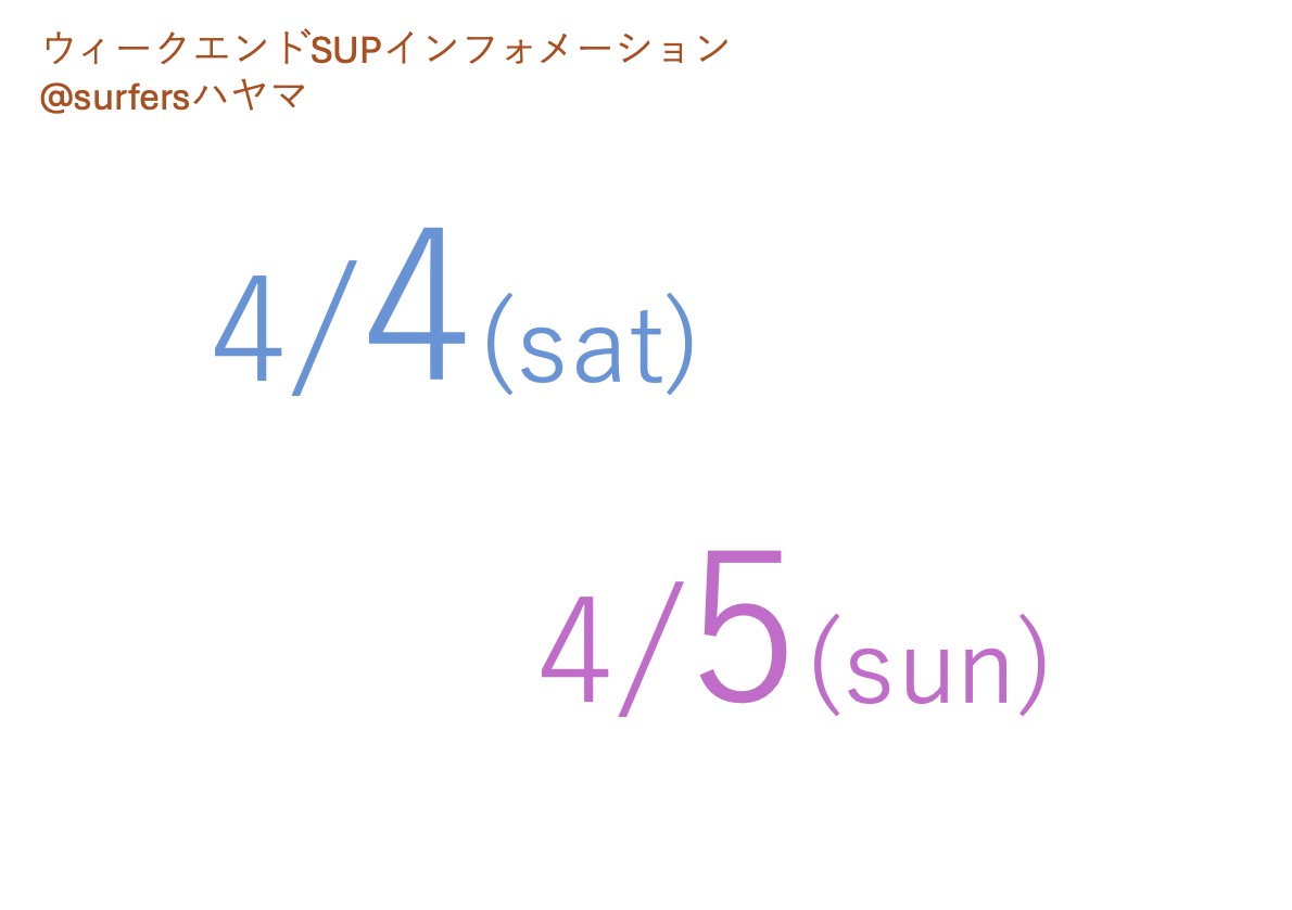 4/4-5のSUP情報@surfersハヤマ