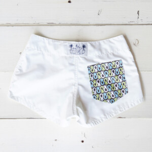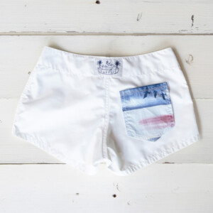 ヨガやランニング用のショーツとして、ワンコのおさんぽや部屋着など、普段ばきで使われる方も多いトランクスです。 ビキニを引き立たせるため、生地は無地のオフホワイト、アクセントとしてポケットだけを柄プリントにするのも人気。